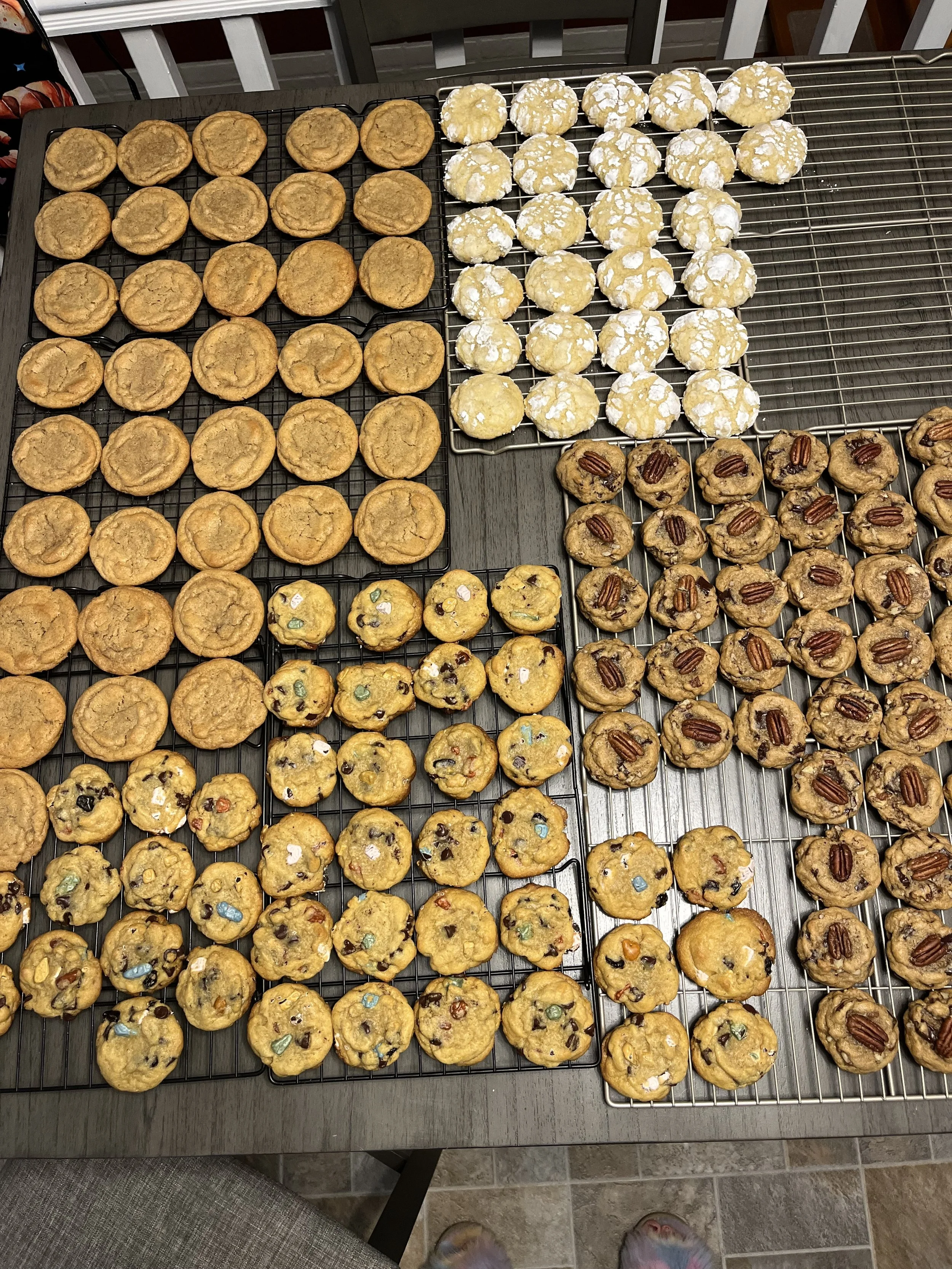 Assorted cookie tray $20.00 Coffee cake mini $10.00 Stoney Batter Cookies - 1 Dozen $15.00 Lemon crinkles - 1 dozen $15.00 Brown Butter Bourbon Pecan cookies - 1 dozen $15.00 Sourdough Crackers - Everything But the Bagel $8.00 Decadent Chocolate Mini Cake $10.00 Chocolate Chip Cookies - 1 dozen $15.00